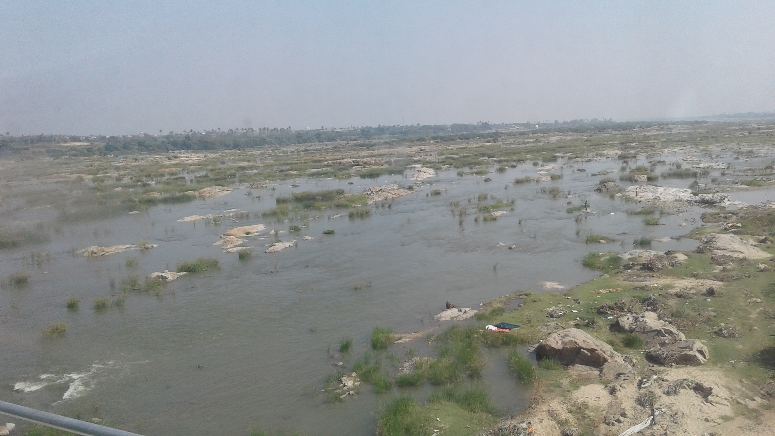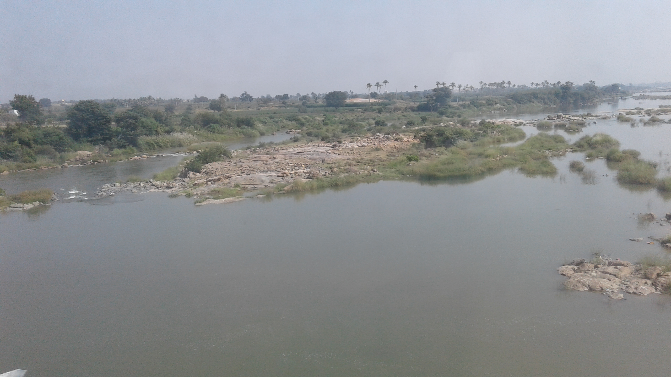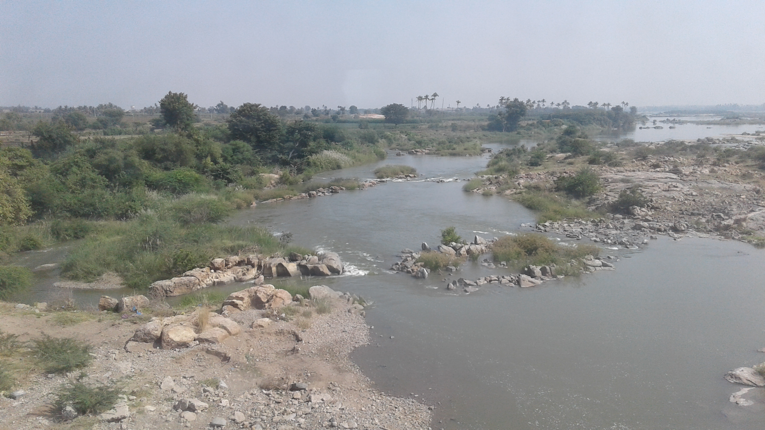We passed a beautiful lake besides towering mounds of stone waste on the right, before ripping through Yerraguntla; where the line from Nandyal joined us on the right. However, the inconsistency in our run continued, as we came to a halt on the mainline at the very next station Yerragudipad. Left after a stop of 5 mins, with the LP blowing both the LT and melodious HT horns together; sounded like an ALCO horn! 😀 Then there was a rainfed stream before we overtook a BOXN rake through the loop line at Kamalapuram. This was followed by a dry river with a sand bed.