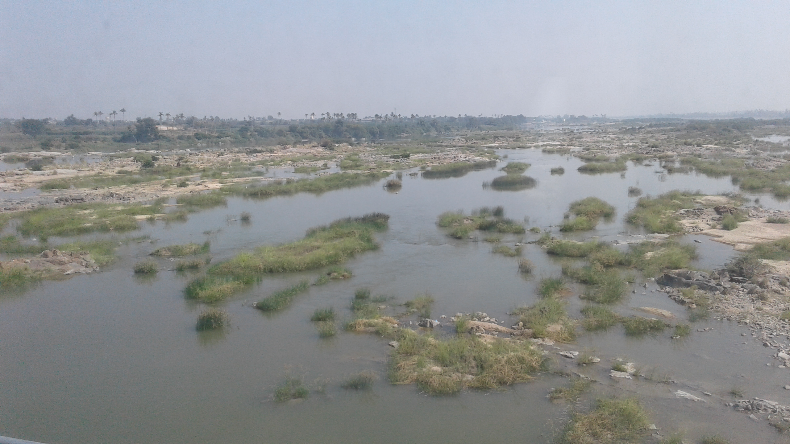 At Matmari we overtook a BOXN freight hauled by Pune WDG4 12838. Then we passed through fields full of white flowers, followed by forests in the distant right at Hanumapura. There was a decent amount of water in the Tungabhadra river.
