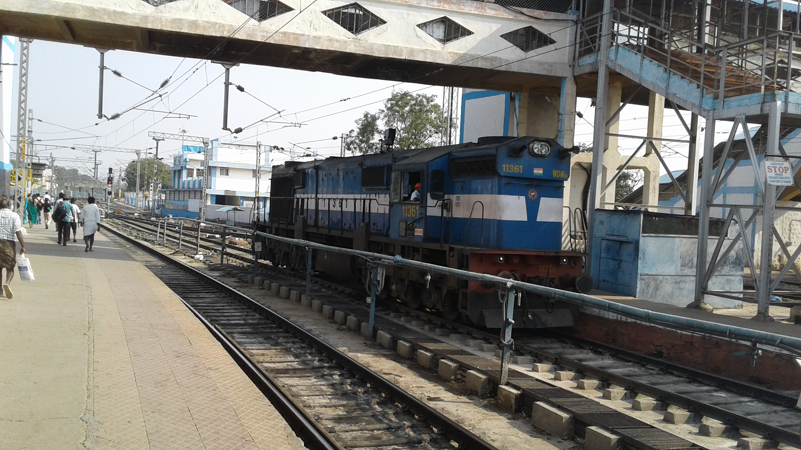 We skipped GY at a slow pace; was pleased to travel by a train skipping such an important junction in broad daylight! In the process, we crossed a stationary freight hauled by twin GTL ALCOs. I also saw GY’s WDP4Ds 40191 and 40375 (as well as a WDG4D) in the DLS. Then the line to SBC curved sharply to the right and took an almost 180 degrees turn! :O