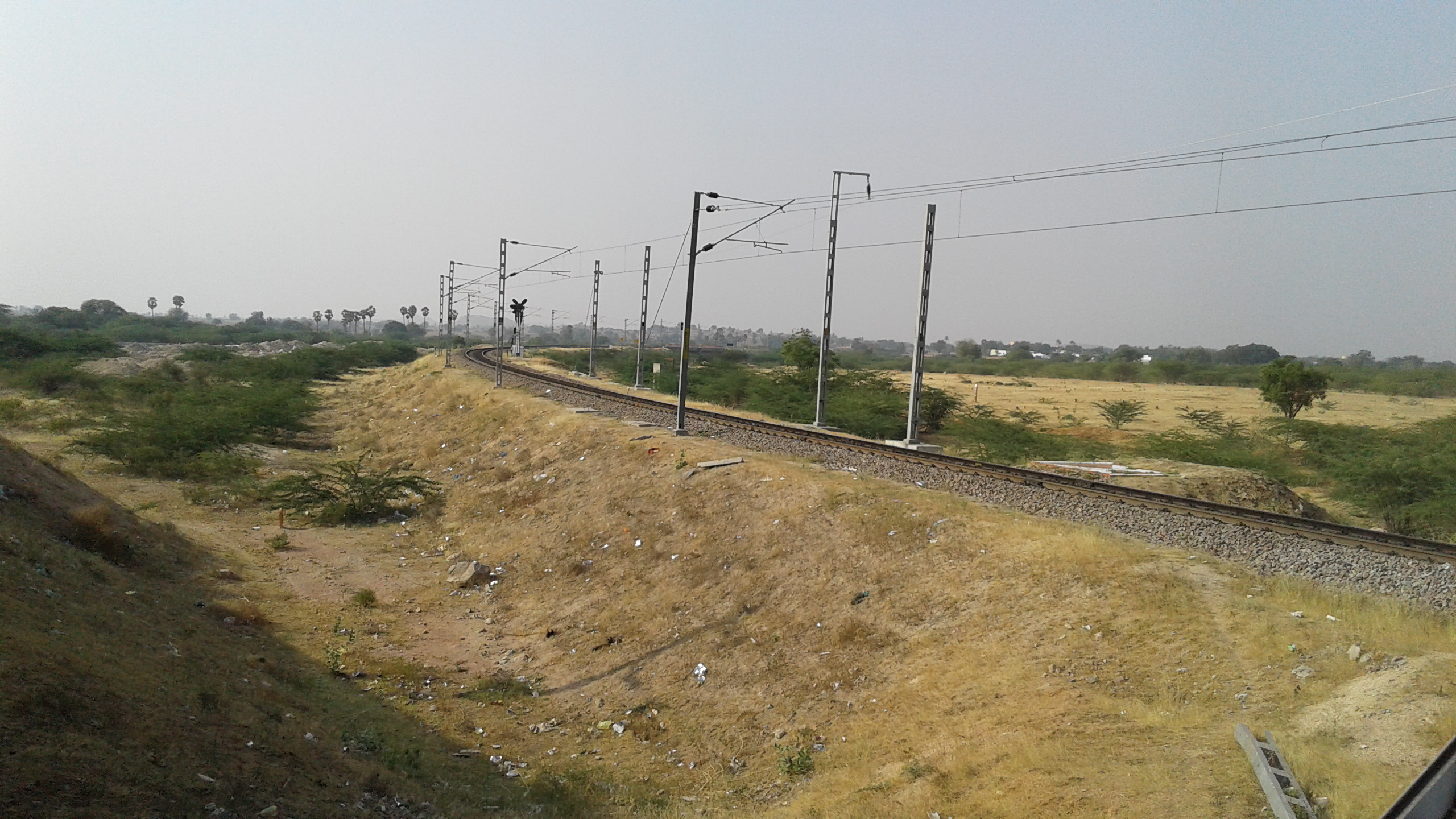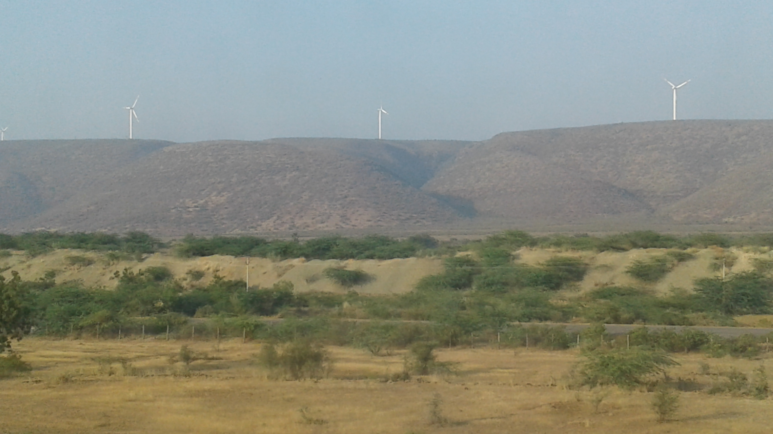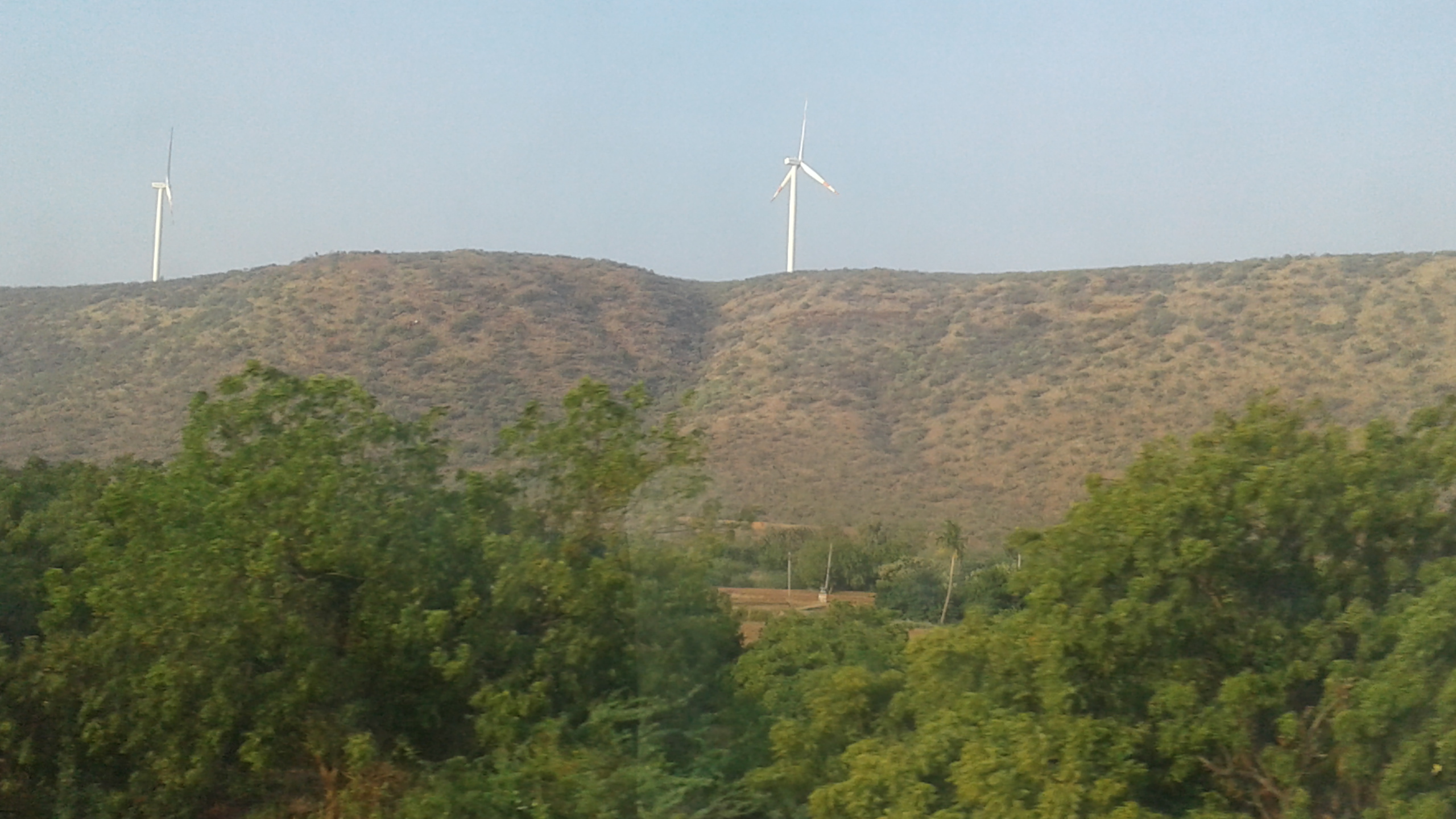 There were coconut and palm trees as well as plantains and maize fields before Rayalacheruvu. Then we passed through bushes and shrubs as well as rainfed ponds before Komali, followed by another skip (of Tadipatri) at MPS 🙂 . Spotted a Gerdau factory and a line branching off sharply to the left at Challavaripalli. Then I dozed off briefly. After I woke up, we had an unscheduled stop at Mangapatnam on the mainline. Departed after 3 mins with a melodious twin tone horn (combination of a whiny and a melodious HT horn!) and overtook twin WDG4s (leading 12055 of UBL – AEB-fitted as well) in the process. Then we were treated to the sight of windmills on a hill in the distant right, along with some greenery.