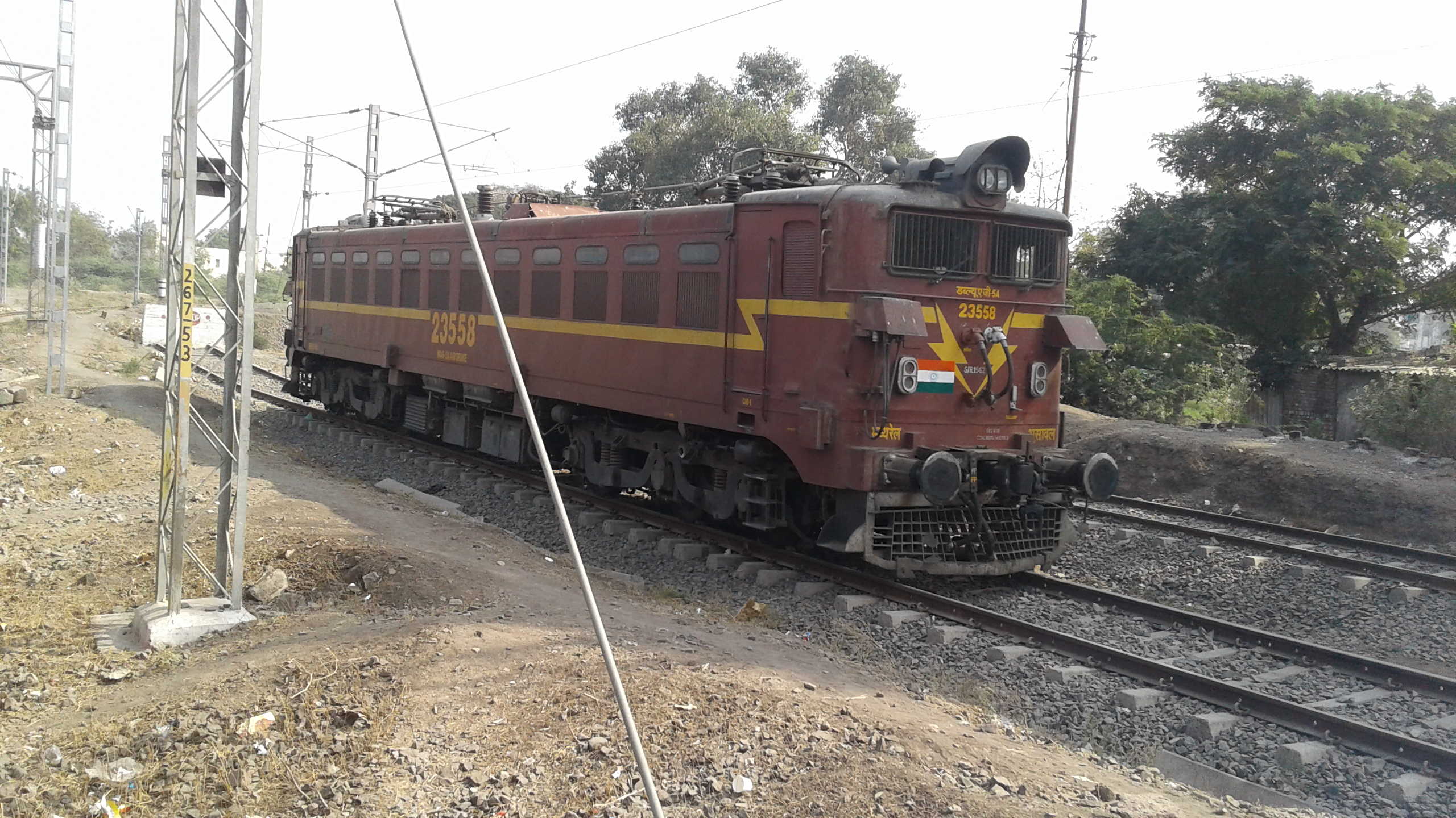 We started moving at 14 19 itself, only to come to a stop 2 mins later; at the south end of the platform! It looked like we had made a double stop so that more passengers (from either end) could board! :O We finally departed at 14 43, 8 mins late, with an EMU-type horn. A minute later, 12780 NZM-VSG Goa express arrived behind TKD WAP7 30348 on PF2 β it was running bang on time. Our Baramati line took a huge curve to the right; while I spotted a maroon-brown BSL WAG5 23558 on a siding.