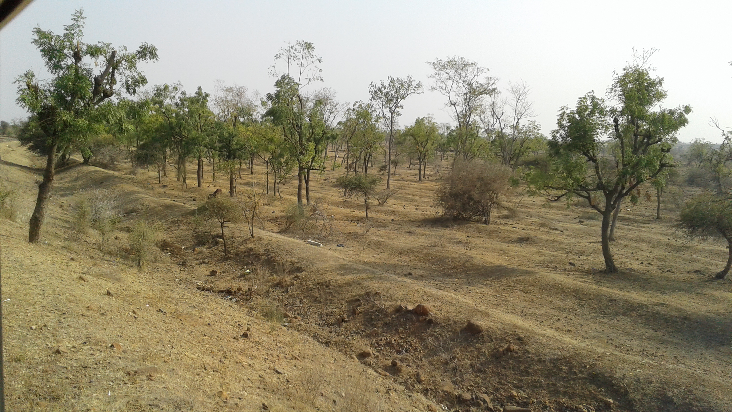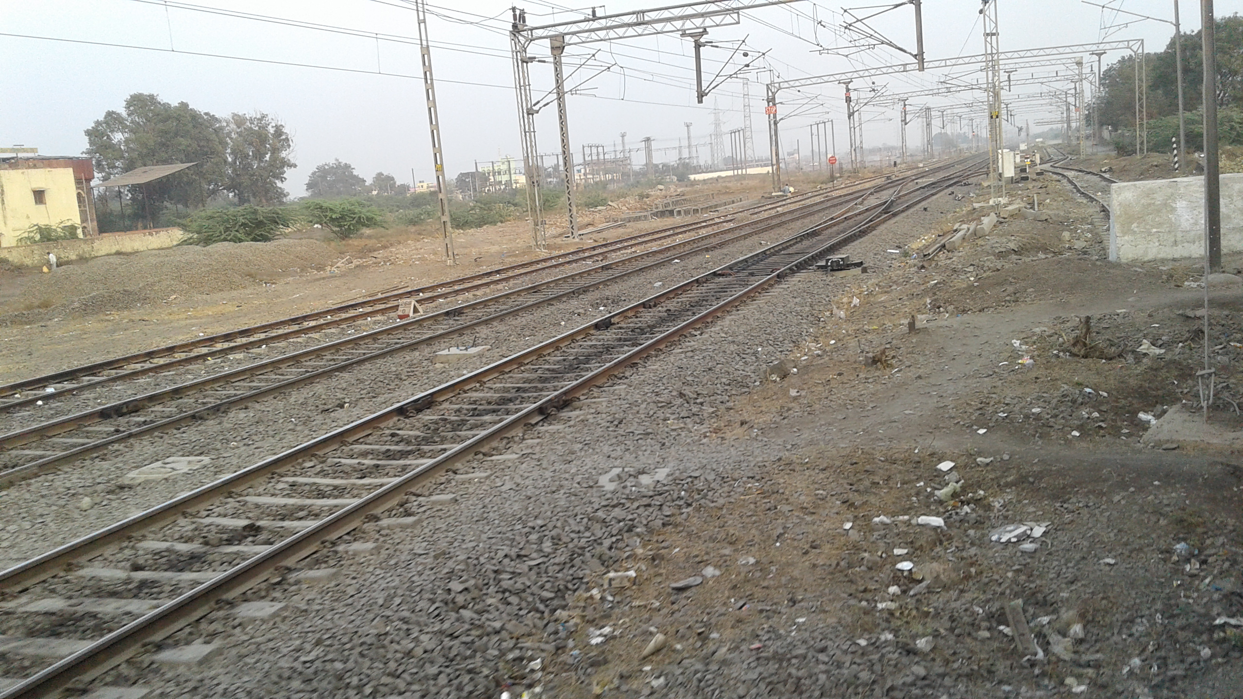 There was a tractor on the left and a house under construction, before we had our first stop at Maladgaon for just about 40 secs. Then there was a PSR of 40 kmph (20 for goods), followed by a hut and a cottage. Now there were only poles; the section was not wired. Then there was a TSR of 45 kmph, followed by typical rural scenery β rows of coconut trees in the distant right, women and children working in corn fields, goats, lambs and sheep grazing, tractors; and rows of plants and small trees. We also passed a pipeline and some thorny bushes; before a road gave us company on the right. Had our 2nd stop at Sirsai for about only 50 secs; nearby lay a well with a wall of very low height β exposed in a precarious manner! :O Then there were a few dry open spaces.