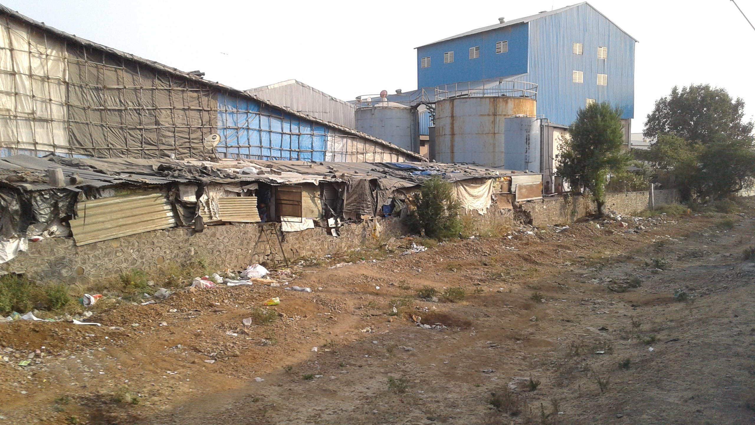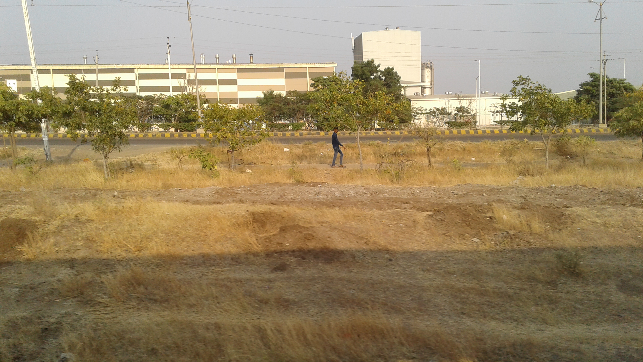We had a stop for less than a minute at Baramati LC; just like in the onward journey. Then there were more factories/industrial establishments (one of them near slums).
