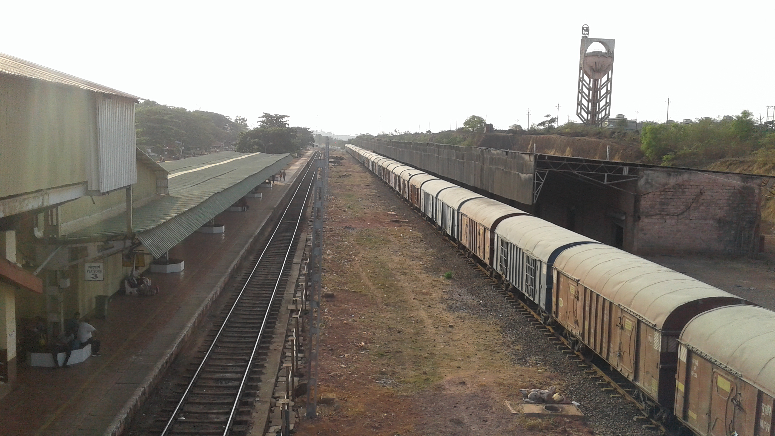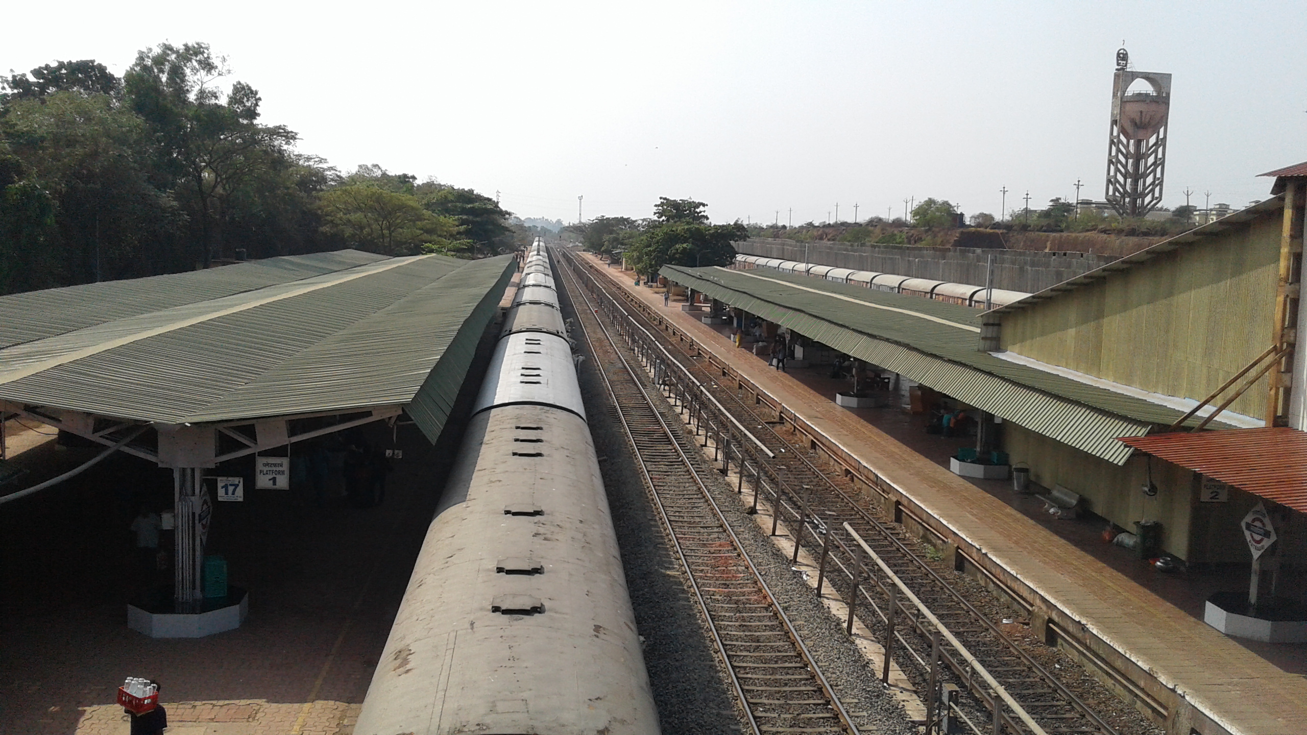 3)Aerial view of the station; you can see the departing Mandovi express and all the trees adding to the charm, as well as a huge water tank in the distant right.