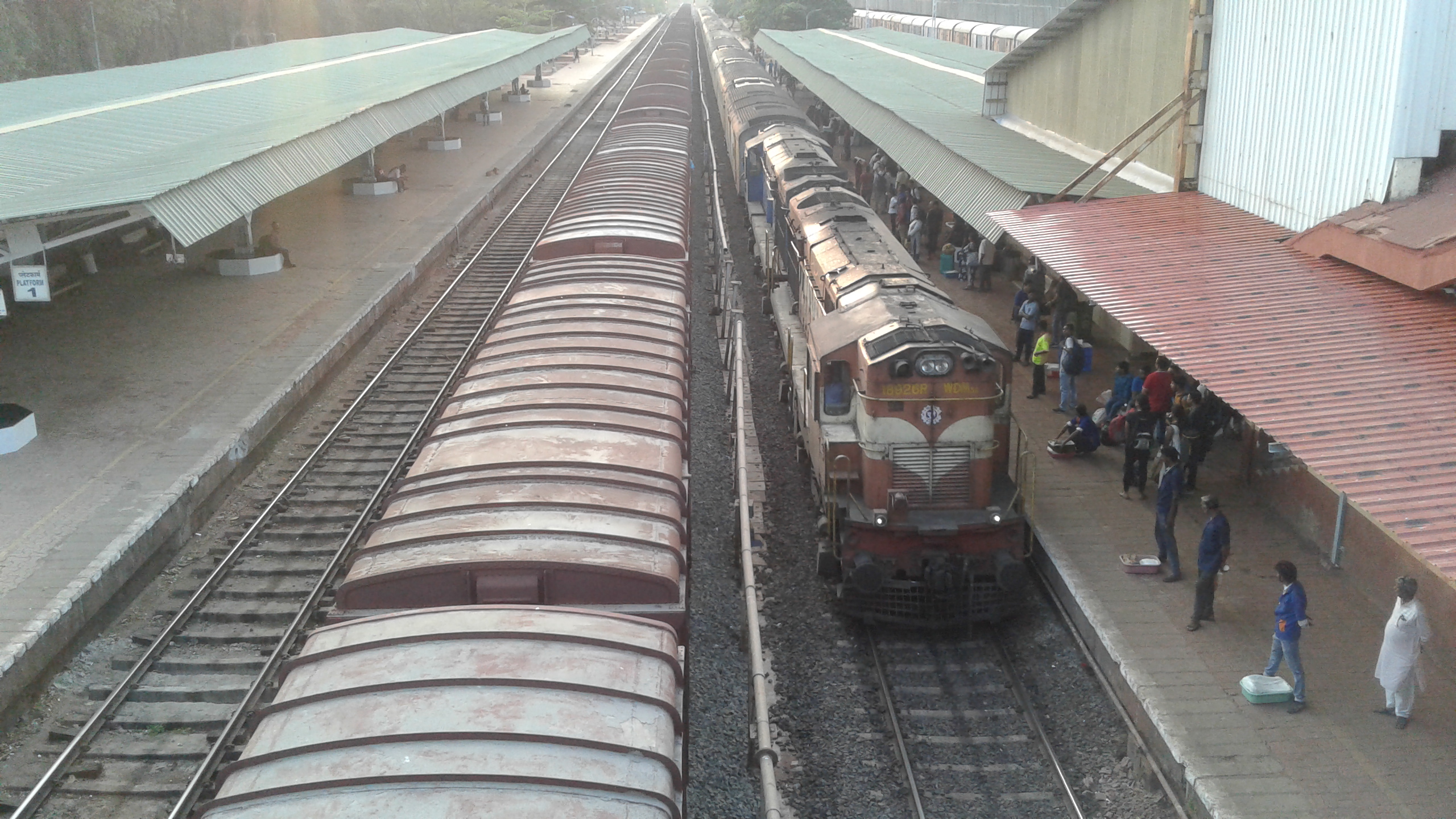 1)My 10103 CSMT-MAO Mandovi express, hauled by surprise link Pune WDM3A twins 16013R and 16750R (APU-fitted), reached Ratnagiri (Platform 1) at 14 40; 1 hour 25 mins late (as usual! 😛 ) . An announcement was then made for its counterpart 10104 Mandovi to depart from PF2.
