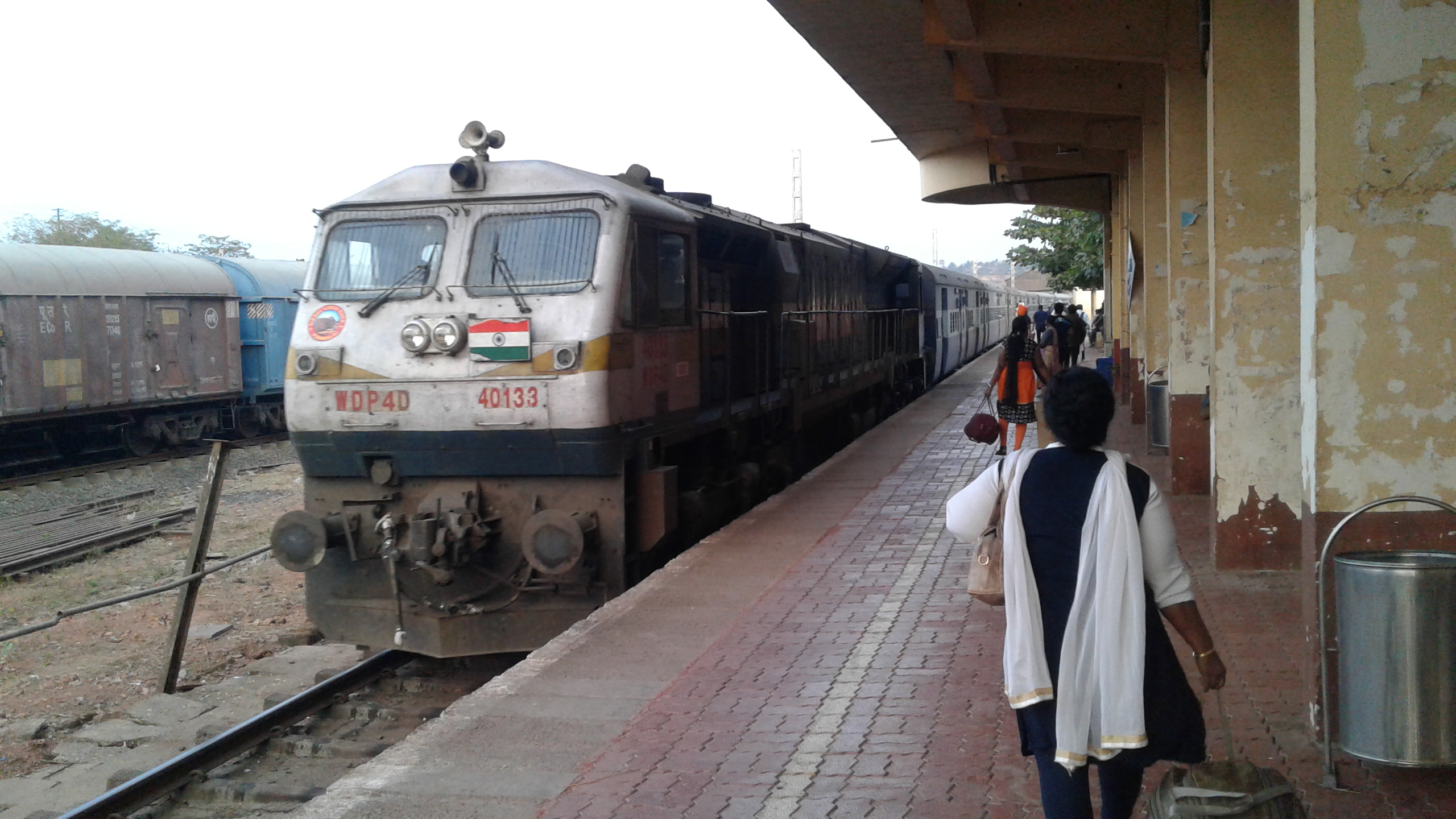 18)16345 LTT-TVC Netravati express arrived on PF1 at 18 34 (14 mins late) behind GOC WDP4D 40134. Surprising that KeSK was diverted to PF3, given that Netravati arrived only more than 20 mins after KeSK departed.