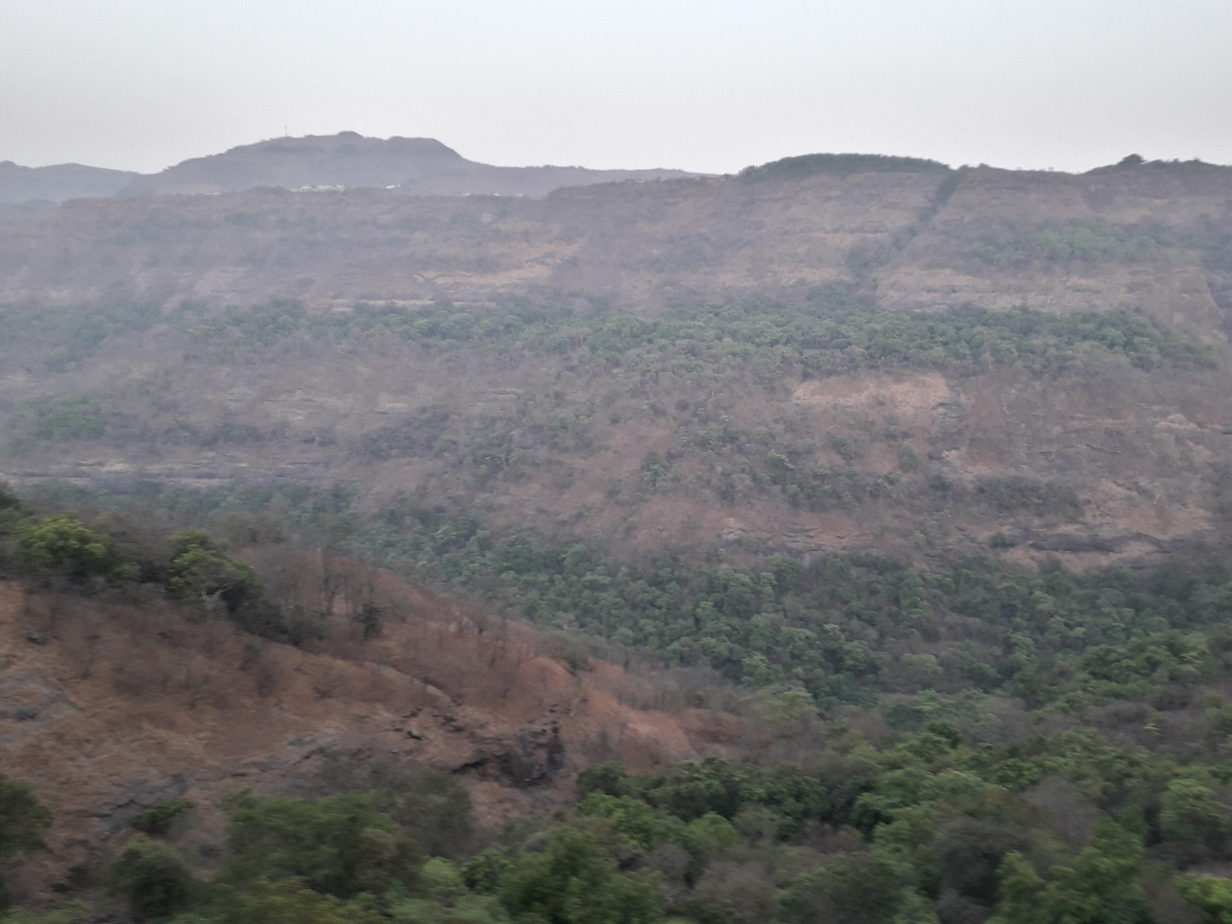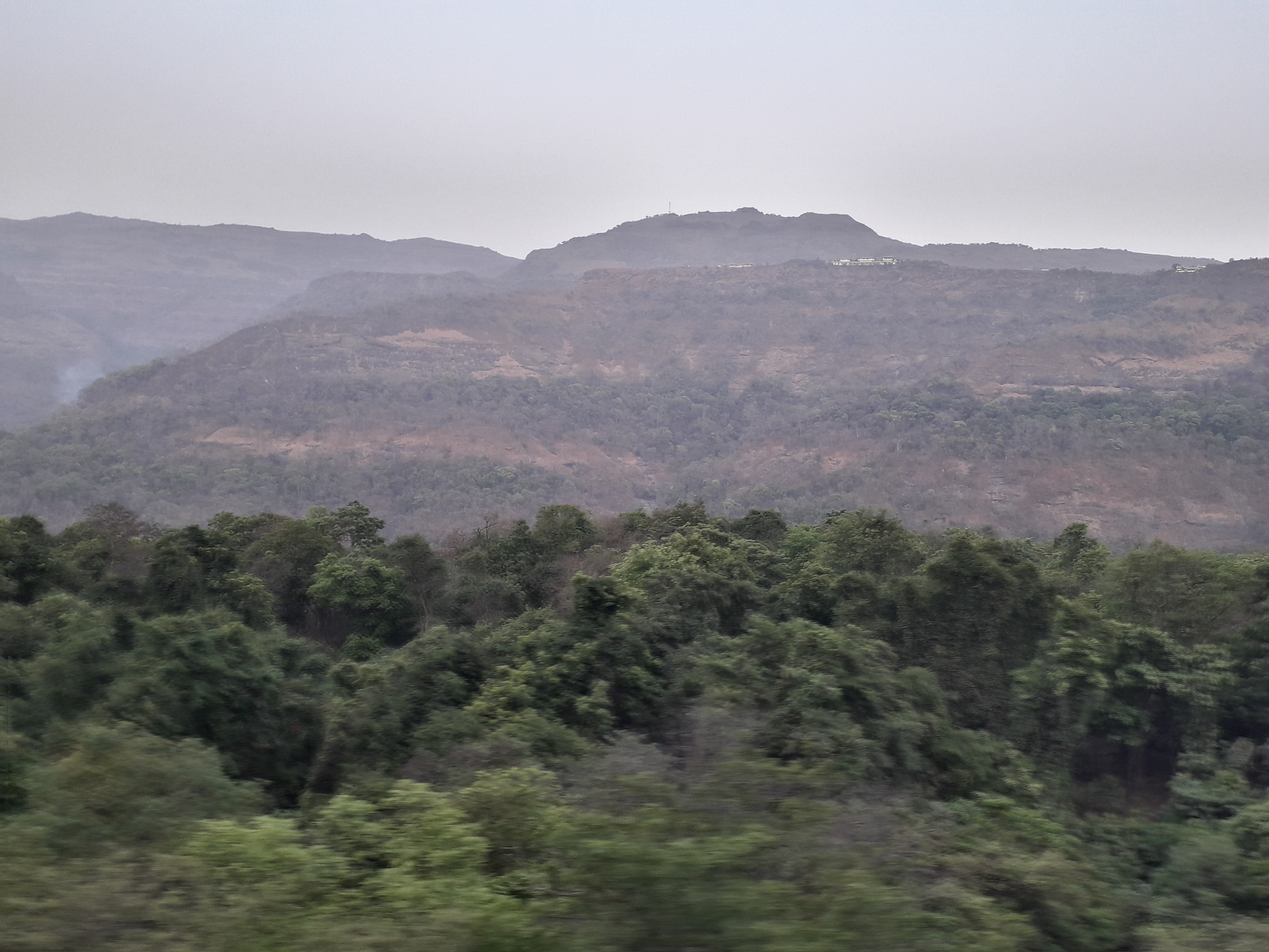 We pulled into Platform 1 of Karjat at 18 23, 16 mins late. There was a long LT toot by the bankers attached at our rear (for the climb up the Bhor Ghats), followed by a gap of a minute; before the same toot was blown again – as we departed after a halt of 5 mins. I don’t understand why this practice was followed. Anyway, we crawled out of the junction and maintained that speed till Palasdhari; thanks to a Car Carrier Rake (belonging to TRAC1 Logistics and hauled by LGD WAG9 31179) that we had to overtake through the loop line. In the meantime, a local from Khopoli crossed us at a good speed. We finally accelerated through a big curve and crossed a largely dry stream. The Bhor Ghat views were breathtaking as ever, despite being the summer season! 🙂