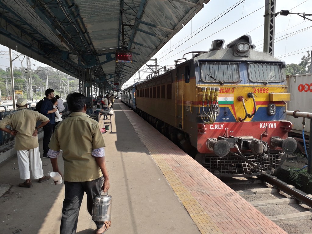 Saturday November 16th had found me on a mini-trip to Igatpuri; in order to escape the hustle-bustle of a workaholic city like Mumbai. I had reached there by 15017 LTT-GKP Kashi express (via BSB). For the description of that journey please go to Part 1: https://ashwinkumar1989.online/2019/11/17/escaping-from-the-hustle-bustle-of-mumbai-yet-again-part-1/ . Now was the time to return; by 22148 SNSI-DR superfast. The train arrived around half an hour late on Platform 4; behind KYN WCAM3 21882.