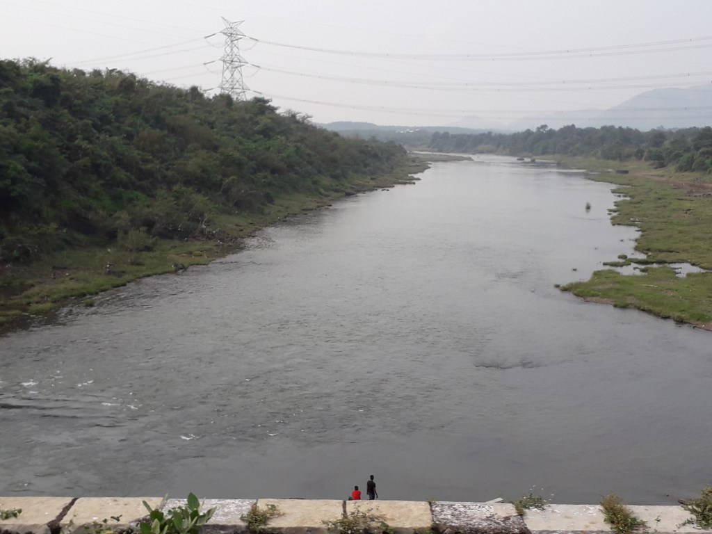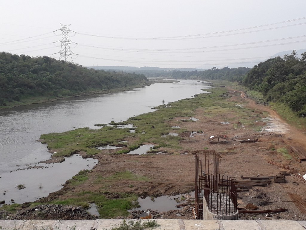There was yet another unscheduled halt at Vasind for less than half a minute; where I observed a lot of construction work going on; as well as a KYN WDP3A 15518 in Tejas livery with an inferior freight – sad to see such mighty beasts once-upon-a-time; reduced to this kind of a fate! 😦 Anyway, we than passed a residential complex with the board ‘JSW Steel-coated Products’ in the distant right. Then came the broad and perennial Bhatsa river.