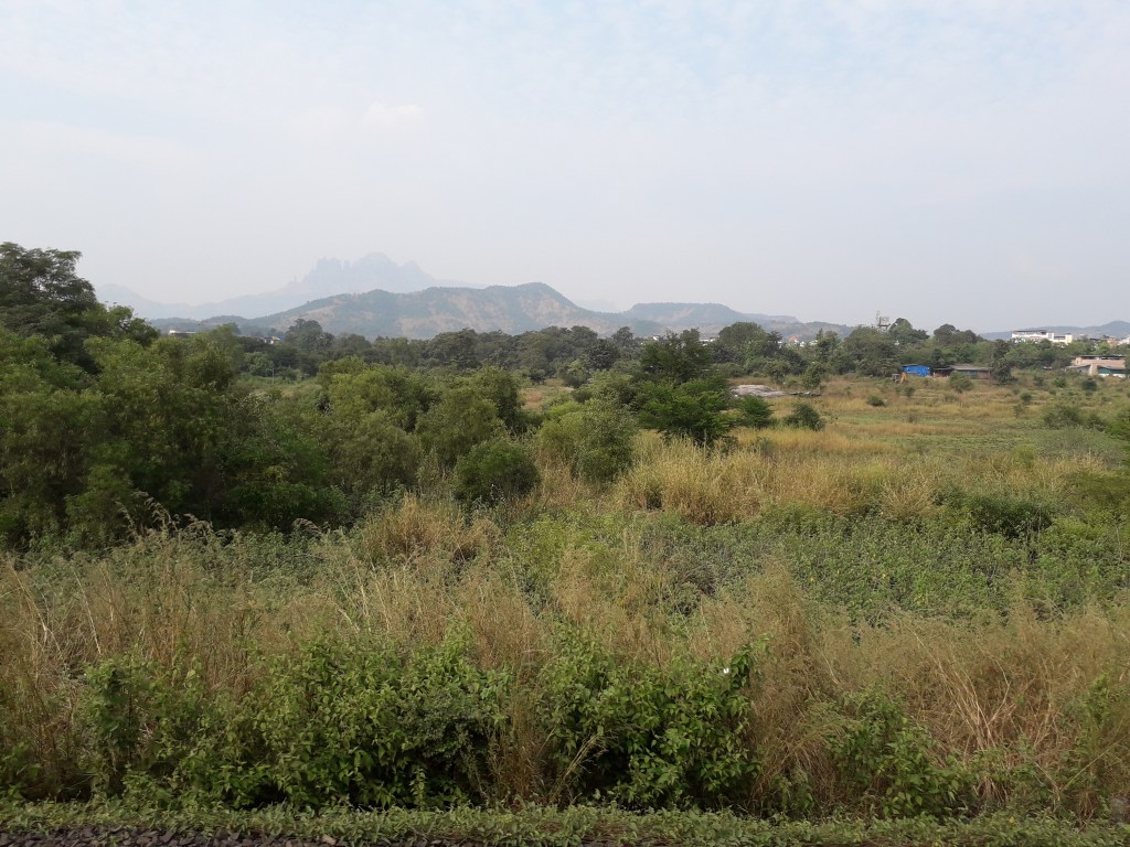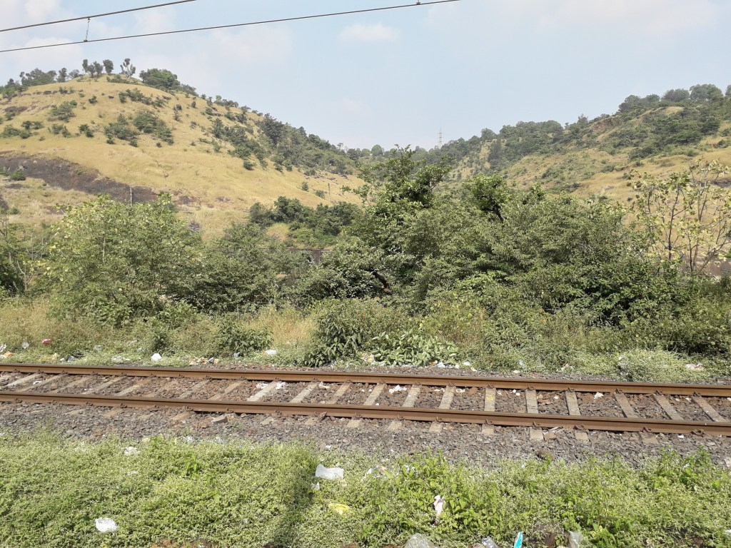 Meanwhile, 11071 LTT-BSB Kamayani express thundered past us behind another WAP7. We had another unscheduled stop at Atgaon for 50-odd seconds. I spotted a WDS6 with a short rake carrying sleepers and rails in the distant right; there was also some drilling work going on at the platform on our immediate right. We accelerated to MPS yet again before lethargy kicked in once more; owing to a TSR of 80 kmph. The route was interesting; with lots of sharp curves and forests on our immediate right. We blasted through Asangaon before the speed phobia struck yet again; as we started crawling. As we picked up speed slightly, 12617 ERS-NZM Mangala Lakshadweep express crossed us behind GOC WDP4D 40570. There was more scenery; including some uniquely shaped mountain peaks (partly forming a plateau) in the far right.