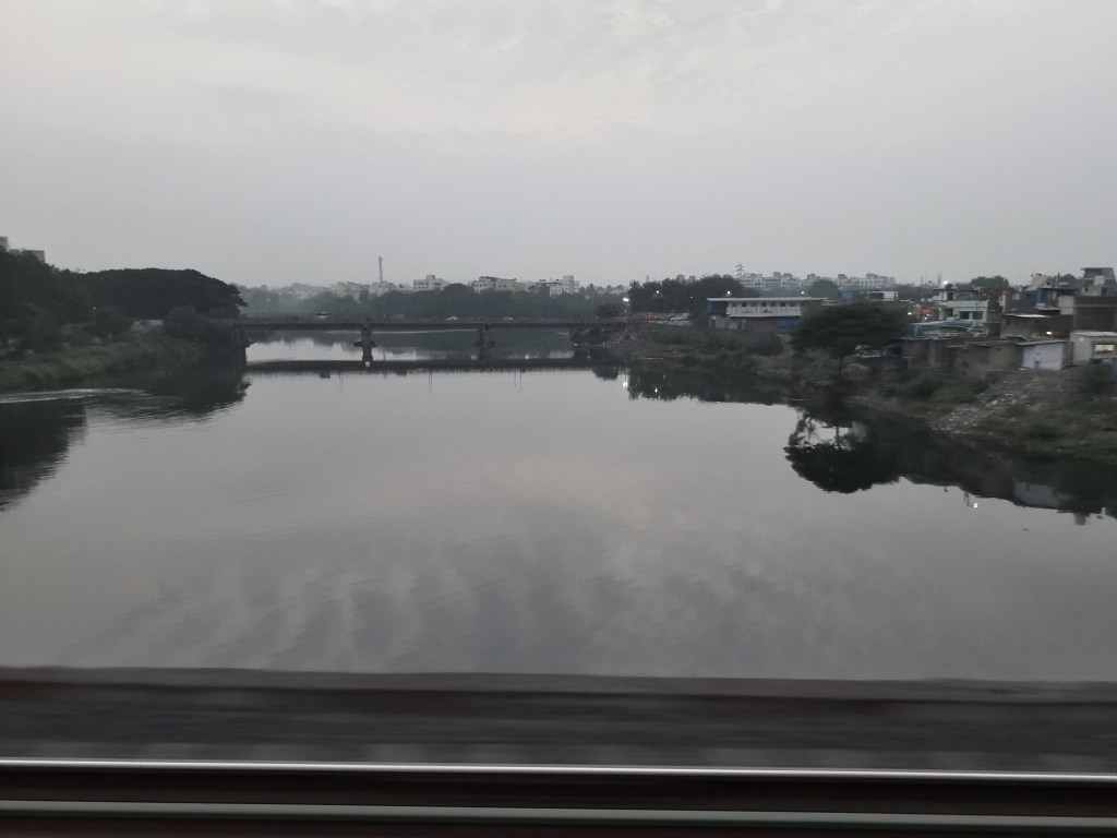 There were boys playing cricket at another ground before Dehu Road; which was skipped at MPS as well. After a huge curve, we overtook a close to an hour late running 51317 Panvel Pune passenger with a WCAMx at Chinchwad. There were some fires burning at Pimpri! :O We dropped our pace slightly, before accelerating quickly to MPS again. 12128 Pune Mumbai Intercity crossed us with DLW-made Ajni WAP7i 37028 after Kasarwadi. We slowed down again at Dapodi and crossed the Harris Bridge over the murky Mula-Mutha river.
