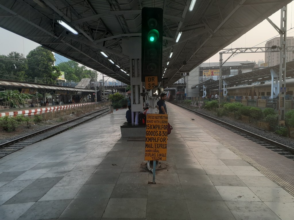 Barely a minute later, 12127 departed with a big jerk. The rear EOG was on and it was very loud!! By the way, there was a Speed Restriction Board on PF4 – which indicated an MPS of 15 kmph for goods trains and 30 kmph for mail/express trains whenever the signal displayed a single yellow.