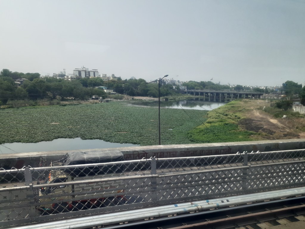 We crossed 22498 TPJ-SGNR Humsafar before arriving at LNL at 09 45, 4 mins late. Our bankers were detached with yet another big jerk – boy, how many jerks we had to endure!! We left after a stop of 3 mins. We soon picked up speed and began racing vehicles on the Mumbai-Pune Expressway. 17032 HYB-CSMT ‘supercrawler’ Express crossed us with a WAP7 after Malavli. Man, I am so used to seeing this train with diesels; sad to see the electrics taking over – again, rapid electrification being one of the developments I had missed out on during the COVID19 period! Anyway, we then crossed a stationary NMG rake hauled by CNB WAG9 32463. Reached Talegaon at 10 14, 5 mins late. I then had a nap; since I had sacrificed some valuable sleep in order to be up and about so early! After I woke up, we pulled into SVJR at 10 47, 3 mins late. Departed after a halt of just a minute. Then we crossed the Sangam Bridge over the dirty Mula-Mutha river.