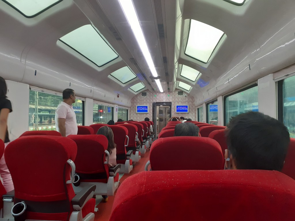 We departed with a big jerk at 07 19, 6 mins late. Have a look at the interiors of our Vistadome coach – attached at the back of our train in this case!
